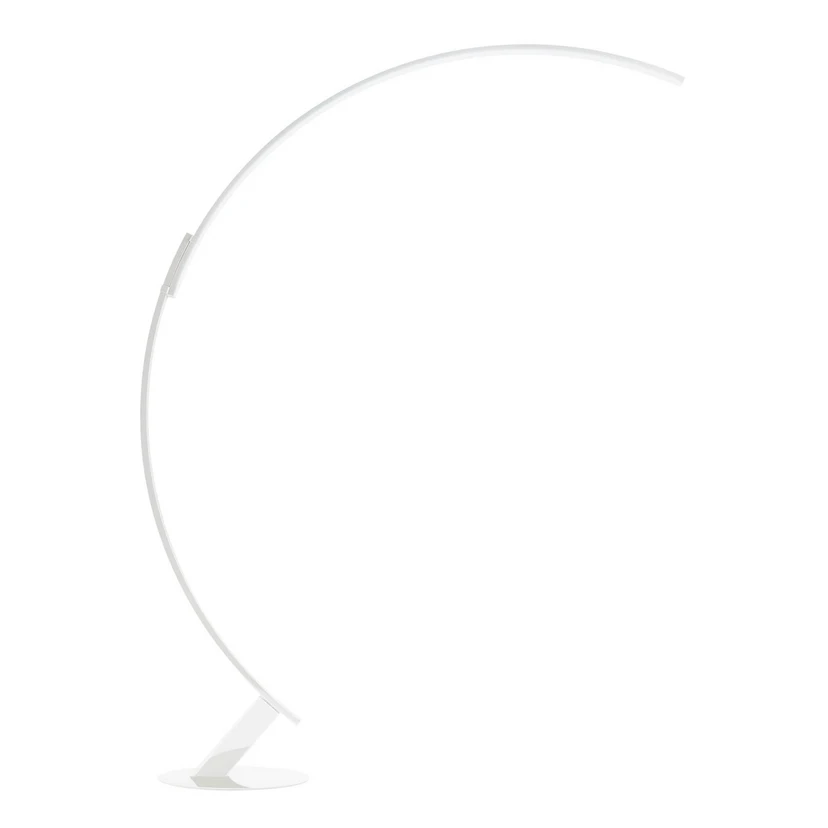 Kyudo Gulvlampe White er en formidabel mastodont, der elegant læner sig ind i rummet i en krum bue, der næsten danner en helcirkel. Med sin imposante størrelse og form, der minder om et segl, fanger Kyudo med det samme beskuernes opmærksomhed og holder dem tryllebundet.
