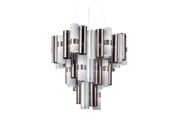 La Lollo Pendel XL Pewter fra SLAMP er en enestående pendellampe, der bringer en nostalgisk elegance ind i dit hjem. Inspireret af de sprudlende 50'ere, er denne lampe designet af Lorenza Bozzoli og udstråler en retro charme, der er svær at modstå. Pendlen består af en række uknuselige og lette teknopolymercylindre, der er arrangeret omkring en LED-integreret central ring. Dette skaber en dramatisk og luksuriøs belysning, der kan tilpasses i både farve og størrelse efter dine ønsker, hvilket gør den ideel til store installationer. Fremstillet i det innovative materiale Lentiflex® med kold folie, har lampen en smuk grå farve, der passer perfekt ind i moderne indretninger. Den ekstra store størrelse gør den til et imponerende midtpunkt i ethvert rum, hvor den både kan fungere som en praktisk lyskilde og et dekorativt element.