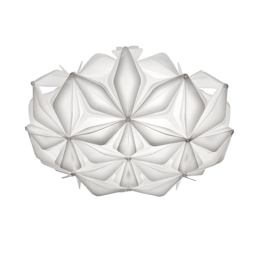 Som altid har Rachele her i samarbejde med det italienske luksusmærke SLAMP fremstillet en lampe, der forener det dybe kunstneriske udtryk med teknologisk innovation og funktionalitet. Således har man gennem den smarte magnetiske holder overflødiggjort brugen af skruer og klæbemidler, hvilket gør let at installere, rengøre og vedligeholde lampen, der både kan monteres på loft og væg.
