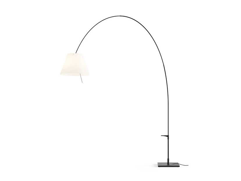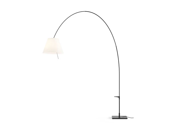 Igen har Rizzatto udviklet på Costanza serien for Luceplan. Her er gulvlampen strukket godt ud og hænger som en sulten grib ind i rummet.