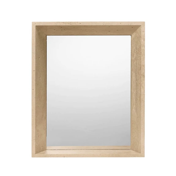 Spejlet er fremstillet af glas og travertin, hvilket giver det en elegant og naturlig finish. Den beige farve og de naturlige stenstrukturer tilføjer en varm og indbydende atmosfære til ethvert rum. Med målene 63,5 cm i bredden, 53,0 cm i højden og 12,0 cm i dybden, er det perfekt til at skabe et iøjnefaldende fokuspunkt i din entré, gang eller stue. Travertinens naturlige variationer gør hvert spejl unikt.
