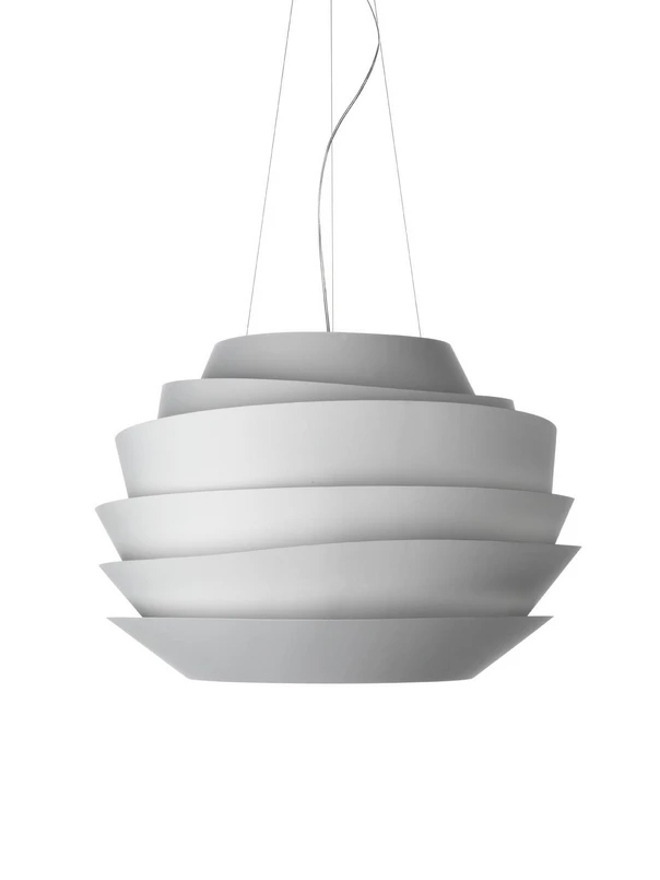 Le Soleil Pendel E27 & GU10 Hvid 3,5m er en spændende konstruktion af overlappende former til et harmonisk hele. Lampens skærm er formet af slyngede bånd i forskellige længder, der tilsammen skaber en bikubelignende struktur. Hvert bånd overlapper det forrige, men i forskellige vinkler, så lampen fremstår let asymmetrisk og derved får et moderne udtryk. Båndene påvirker også det samlede lysbillede, idet de dirigerer lyset opad fra sammenføjningerne i de enkelte bånd, samtidig med at åbningen i bunden retter lyset nedad i et direkte skær. Resultatet er en smuk kombination af en diffus allround-belysning og et praktisk downlight, der gør lampen velegnet som både dekorativt element og elegant belysning i rummet.