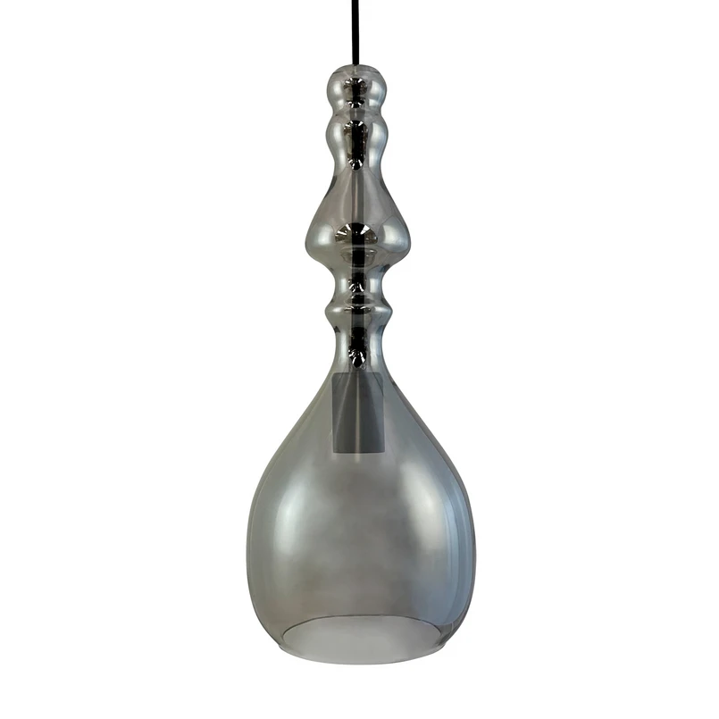 Lea Pendel Smokes præsenterer sig i et formskønt design, der både beriger indretningen med et dekorativt og æstetisk design og samtidig udgør en praktisk lyskilde. Lampen er kendetegnet ved en smuk udformning med bløde buer og voluminøse former, der giver den et orientalsk præg. Skærmen er fremstillet af tonet glas, der giver lyset et stemningsfyldt skær, hver gang lampen er tændt. Skærmens glas er transparent og giver dermed direkte udsyn til fatningen og lyskilden inde bagved. Pæren kan derfor skinne ud til alle sider i et klart og direkte skær. Da pæren er synlig, kan man med fordel vælge en dekorativ pære til denne lampe. Her er det en fordel, at Lea Pendel har en standardfatning (E27), der passer til mange forskellige pæremodeller.