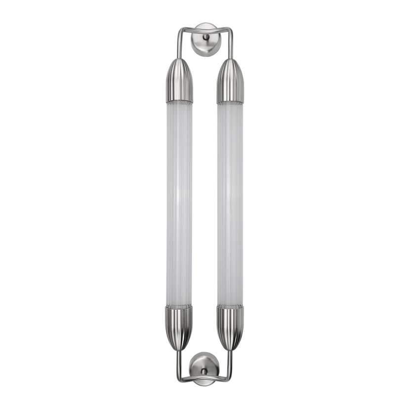 Lemon Squeeze Væglampe Double Long Plated Steel fra UMAGE er en elegant tilføjelse til dit hjem. Denne væglampe fra UMAGE kombinerer moderne elegance med klassiske elementer, hvilket gør den til et perfekt valg for enhver indretning. Fremstillet af metal, glas og plast, har lampen en unik tekstur med ekstruderet glas og karakteristiske bølger, der fanger lyset på en enestående måde. Med en bredde på 18,5 cm, en højde på 94,0 cm og en dybde på 16,2 cm, passer den perfekt ind i både stuer og gange.
