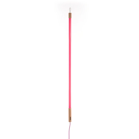 Linea LED Lampe Fucsia er en ny fortolkning af lysstofrøret i et simpelt og elegant design. Det lysende neonrør er placeret indeni et tyndt rør af akryl, der ikke kun stabiliserer lampen, men også fungerer som et lysfilter der blødgør det intense lys. I mørket giver den en tynd stribe af stemningsfuldt lys, som henleder tankerne til de velkendte lyssværd fra Star Wars.