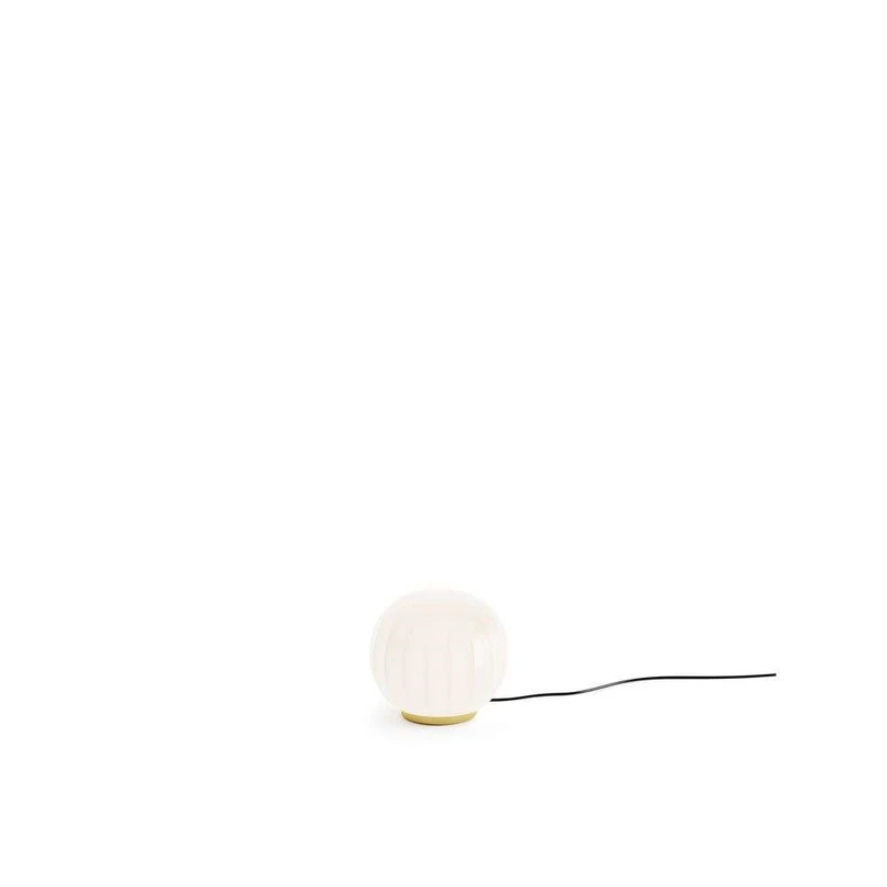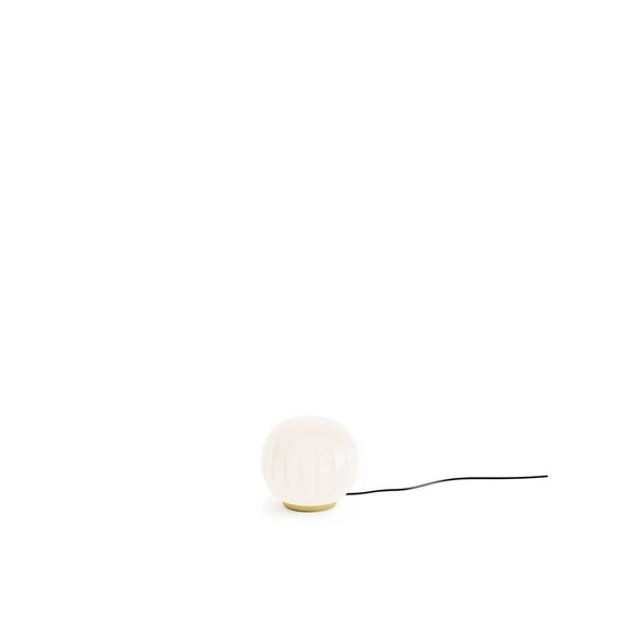 Lita Bordlampe Low Ø18 Brass er en særdeles yndefuld og elegant lampe, der blander naturlige materialer og smukke geometriske former. Lampens skærm er gjort i mundblæst opalglas, hvorigennem sarte lodrette liner løber fra top mod bund. Denne dynamiske overflade får lys og skygge til at spille henover overfladen, når lampen tændes. Især det klassiske hjem vil således prydes af denne model. De sarte farver og enkle linjer gør den særdeles alsidig og nem at indpasse i næsten ethvert lokale.