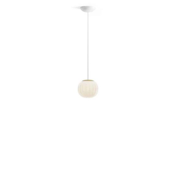 Lita Pendel Ø18 Brass er en særdeles yndefuld og elegant lampe, der blander naturlige materialer og smukke geometriske former. Lampens skærm er gjort i mundblæst opalglas, hvorigennem sarte lodrette liner løber fra top mod bund. Denne dynamiske overflade får lys og skygge til at spille henover overfladen, når lampen tændes. Især det klassiske hjem vil således prydes af denne model. De sarte farver og enkle linjer gør den særdeles alsidig og nem at indpasse i næsten ethvert lokale.