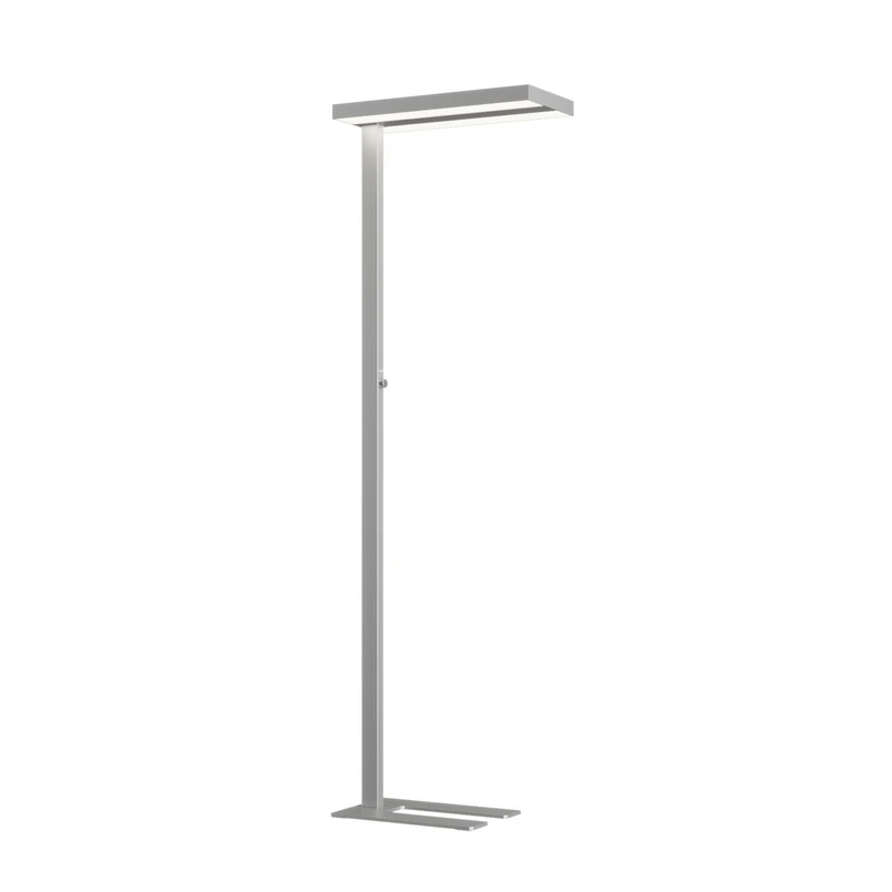 Logan Gulvlampe Silver/White er den oplagte kontorlampe, da dens design og belysning er indrettet med særligt henblik på at skabe de optimale forhold til arbejde og længere tids koncentration. Lampens fod har en U-form, der gør den nem at manøvrere omkring bordben, mens lampehovedet er fladt og bredt med indbyggede LED’er, der skinner ud både foroven og forneden i et praktisk universalhvidt skær, så man får en kombineret direkte og indirekte belysning. LED’erne er dækket af brede paneler, der sikrer et ensartet og blændfrit skær, når lampen tændes.