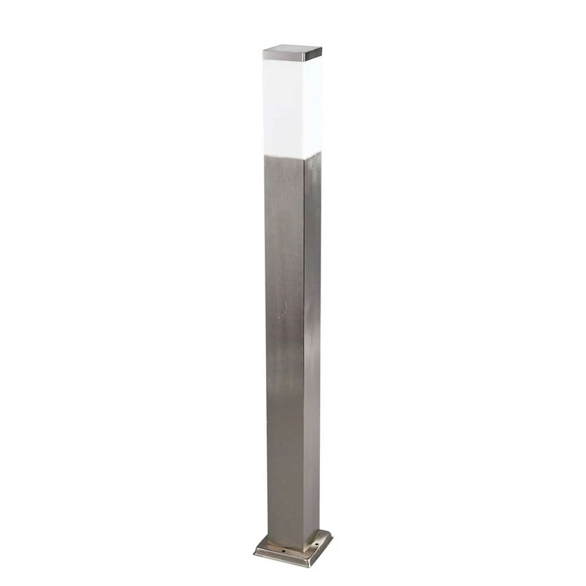 Lorian Udendørs Havelampe Steel H100 fremstår stilren med sin enkle form, der består af lutter rene, lige linjer og rette vinkler. Designets simplicitet forenet med det neutrale farveskema gør lampen til en alsidig vinder i enhver have. Sokkellampen hviler på en kvadratisk fod, mens den selv har en rektangulær udformning. Armaturet er fremstillet af rustfrit stål og har en skinnende overflade, der modsvares af det opalhvide plastdæksel øverst. Herfra strømmer lyset ud til alle sider. Dækslets matte overflade bevirker, at lyset kan spredes jævnt ud, og at det samtidig fremstår blødt, behageligt og blændfrit for øjnene.