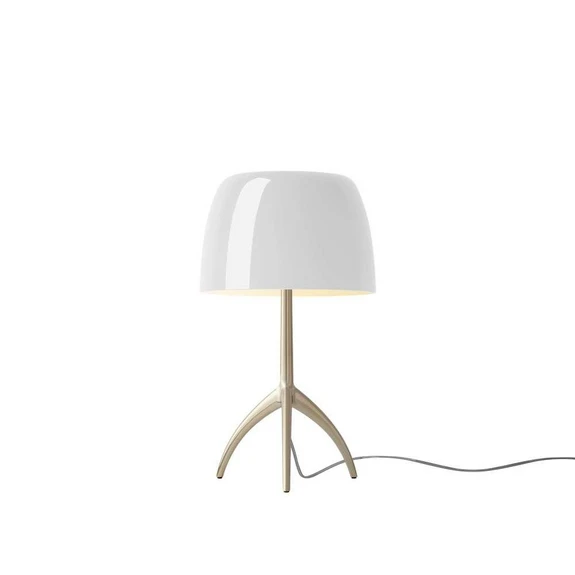 Den klassisk Lumiere Piccola Bordlampe E14 Golden/Hvid fra Foscarini designet af Rodolfo Dordoni i 1990. Det er en af de mest populære af Foscarinis mange lamper og dette skyldes helt klart kombinationen af det klassiske og stilrene samt af materialevalget.
