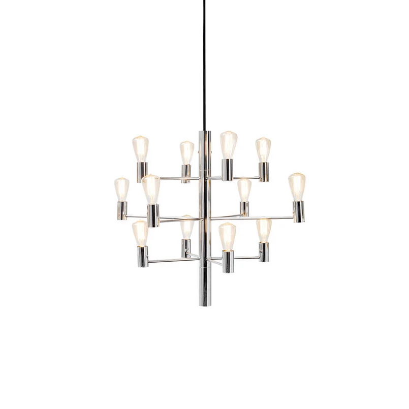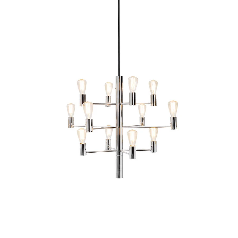 Manola 12 Lysekrone Chrome er en utrolig smuk lysekrone med moderne træk. Den helt fantastiske lille serie af lysekroner bærer de samme luksuriøse designkarakteristika. Et råt, industrielt design med blottede lyskilder siddende på smukke, slanke arme udført i metal. En lysekrone, hvor der er skåret ind til benet rent udtryksmæssigt for at sikre et stilrent look, der både vil holde i mange år, og som passer ind de fleste steder, der indbyder til en lysekrone. Den kan med fordel kombineres med et virvar af forskellige dekorationspærer, der vil komplimentere det lidt nøgne industrielle look rigtigt fint.