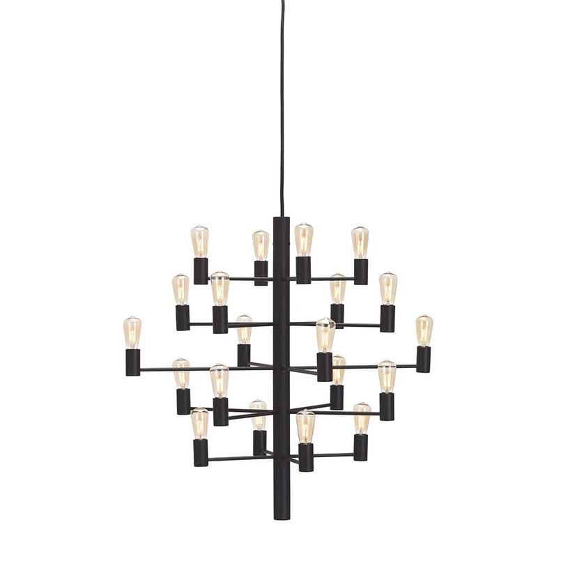 Manola 20 Lysekrone Sort Dæmpbar LED er en utrolig smuk lysekrone med moderne træk. Den helt fantastiske lille serie af lysekroner bærer de samme luksuriøse designkarakteristika. Et råt, industrielt design med blottede lyskilder siddende på smukke, slanke arme udført i metal. En lysekrone, hvor der er skåret ind til benet rent udtryksmæssigt for at sikre et stilrent look, der både vil holde i mange år, og som passer ind de fleste steder, der indbyder til en lysekrone. Den kan med fordel kombineres med et virvar af forskellige dekorationspærer, der vil komplimentere det lidt nøgne industrielle look rigtigt fint.