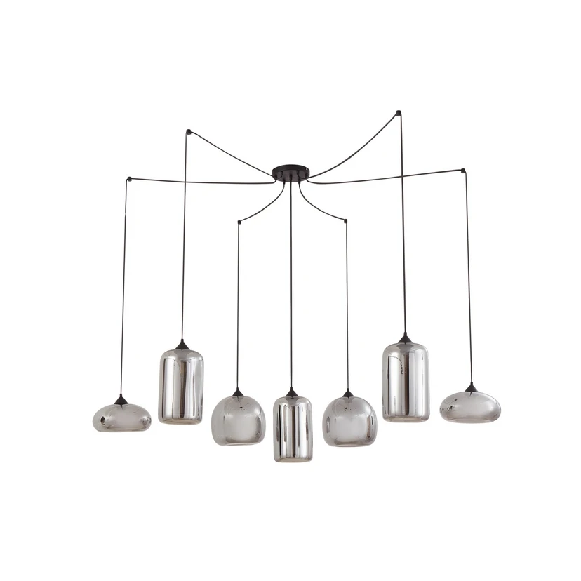 Marla 7 Pendel Røg Grå - Lindby er den perfekte tilføjelse til dit hjem, hvis du søger en pendel, der kombinerer elegance og funktionalitet. Denne smukke lampe fra Lindby er fremstillet af metal og glas, hvilket sikrer en holdbar og stilfuld konstruktion. Den røget grå farve tilføjer et strejf af sofistikeret æstetik, der passer perfekt ind i både moderne og klassiske indretninger. Med en imponerende højde på 150 cm og en diameter på 128 cm, er denne pendel ideel til at skabe en stemningsfuld belysning i både stue og spisestue. Det bløde lys, der filtreres gennem det røgede glas, skaber en varm og indbydende atmosfære, der gør ethvert rum mere indbydende. Uanset om du ønsker at opgradere din spisestue eller tilføje et stilfuldt element til din stue, er Marla 7 Pendel det oplagte valg.