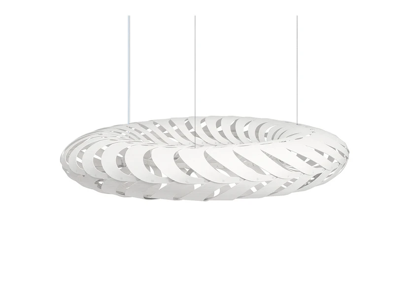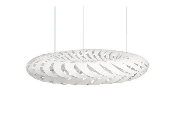 Maru Pendel Ø140 Hvid 2 Sider er en unik pendel fra det anerkendte mærke David Trubridge. Denne imponerende belysningsskulptur er fremstillet af bæredygtig bambus og har en elegant hvid farve, der passer perfekt ind i ethvert moderne hjem. Med en højde på 25 cm og en diameter på 140 cm er Maru designet til at være et iøjnefaldende element i din indretning. Det særlige ved Maru er det kalejdoskopiske lysmønster, som den kaster opad, inspireret af diatomernes fascinerende former. Udstyret med seks interne Lumiled LED'er, skaber den en fortryllende atmosfære med sine overlappende lysmønstre. Maru er ideel til at supplere andre lyskilder og kan skabe en stemningsfuld 'wow!' effekt i rum som barer, lounges eller restauranter. Den kan også anvendes i hjemmet for at tilføje et kunstnerisk touch til din stue eller spisestue.
