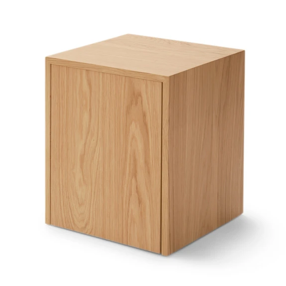 Mass Sidebord w/Skuffe Eg fra New Works er det perfekte valg for dig, der søger et stilfuldt og funktionelt sidebord til dit hjem. Dette elegante møbel er fremstillet af finér i eg med en matlakeret overflade, der fremhæver træets naturlige skønhed og tilføjer en varm atmosfære til ethvert rum. Med målene 47 cm i højden, 40 cm i bredden og 40 cm i dybden passer det perfekt ved siden af din sofa eller seng. Den indbyggede skuffe giver dig mulighed for at opbevare dine essentielle fornødenheder, mens bordets overflade er ideel til at fremvise skulpturelle objekter, en bordlampe eller dine yndlingsbøger. Mass Sidebordet kombinerer form og funktion i en sofistikeret elegance, der er kendetegnende for New Works' designfilosofi. Gør dit hjem mere organiseret og stilfuldt med dette alsidige møbel, der er både praktisk og æstetisk tiltalende.