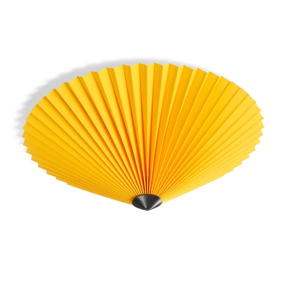 Lampen har en smukt plisseret bomuldsskærm, der mest kendes fra bordlamper, men som nu er vendt på hovedet – eller på siden – i en ny, smart genfortolkning af det klassiske look. Lampeskærmen fås i to forskellige størrelser og en række spændende farver, der kan kombineres for at skabe et dynamisk og sammenhængende udtryk.