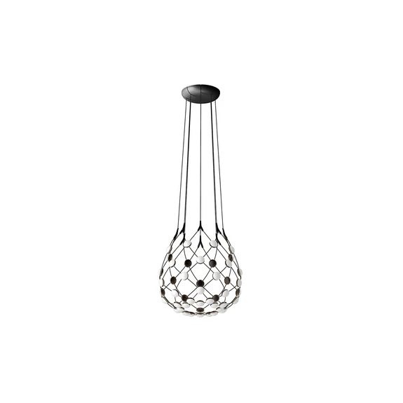 Mesh Pendel Ø100xH90 1m w/Wireless Kit Black fra Luceplan er en imponerende pendel, der kombinerer elegance og innovation. Denne lampe, fremstillet af metal og polykarbonat, har en næsten gennemsigtig struktur, der består af et netværk af fleksible kabler med LED-lyskilder placeret ved deres krydsninger. Den sorte farve tilføjer et sofistikeret touch, mens den store diameter på 100 cm og højde på 90 cm sikrer en optimal lysfordeling i ethvert rum. Med det trådløse kit kan du nemt styre belysningen via Luceplan Mesh-appen, hvilket giver dig mulighed for at skabe forskellige lysindstillinger, der passer til dine behov. Mesh-lampen er også kompatibel med Casambi-systemet, hvilket gør det muligt at integrere den i et omfattende belysningsdesign. Denne pendel er perfekt til at tilføje et dramatisk og moderne præg til dit hjem.