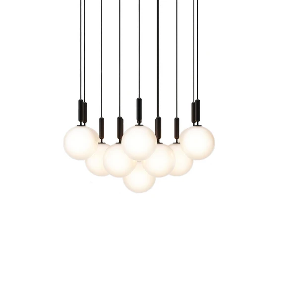 Miira Large fås både som enkelt pendel, en lysekrone med 3, 6 eller 13 lysende skærme. Du har derfor rig mulighed for at gennemføre den elegante stil i hele indretningen; Over spisebordet, køkkenbordet eller i en klynge der oplyser et af husets mørke kroge. Kombiner Miira Large med den originale Miira på 14 cm, for et dekorativt udtryk i hjemmet., hvor du både finder den store og den lille version, som lysekrone eller som enkel pendel.