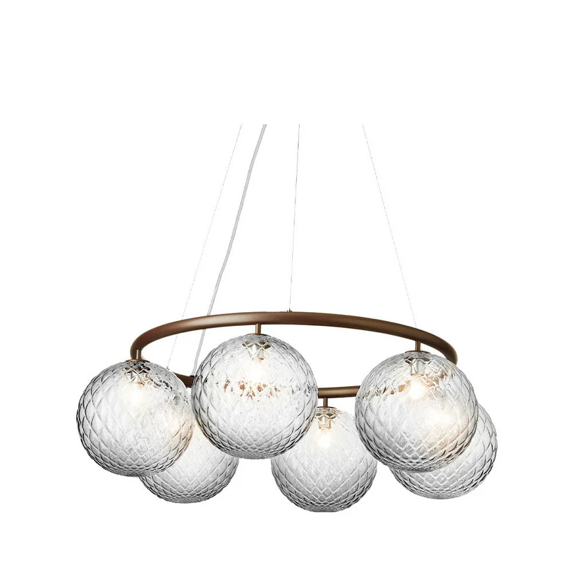 Miira 6 Circular Lysekrone Dark Bronze/Optic Clear er en minimalistisk stilren lampe. Den populære messing-farve spiller smukt sammen med lampens yndefulde formgivning og skaber samtidig en lækker kontrast – dynamisk og samtidig rolig og balanceret. Gennem den cirkelrunde lampeskærm skinner et diffust og behageligt lys, som giver en rolig og afslappende atmosfære i hjemmet.