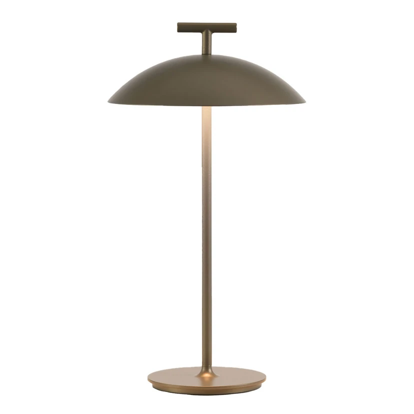 Mini Geen-A Bordlampe Bronze er et helt enkelt og elegant design med rene, slanke linjer, som kan pryde i enhver indretningsstil. Mini Geen fås både som almindelig og bærbar bordlampe i et hav af forskellige flotte farver, så du frit kan vælge den model, der matcher dit behov og din stil bedst. Fælles for begge modeller er deres simple og stilrene design med et slankt stel og en kuppelformet lampeskærm, der sørger for en god, direkte belysning i de nærmeste omgivelser. Modsat den originale bordlampe er den bærbare version ikke begrænset af en ledning eller stikkontakt, og du kan derfor flytte rundt på den efter dit behov og humør. Dette bliver også gjort nemmere af det praktiske håndtag i toppen, som gør, at du let og hurtigt kan tage fat i lampen og flytte den nye steder hen eller tage den med dig på en picnic eller rundt i haven.