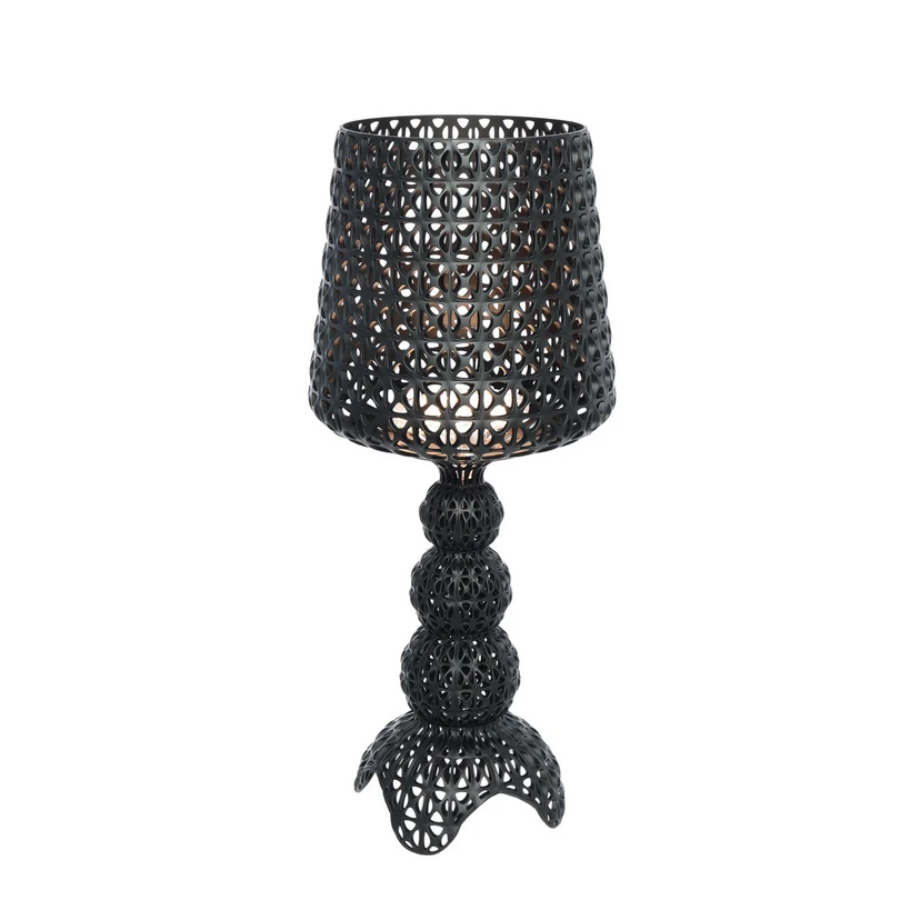 Mini Kabuki Bordlampen i sort, er konstrueret i termoplast ved hjælp af en ny sprøjtestøbeteknik. Med den nye teknik, har Kartell formået at lave en serie af lamper der virkelig skiller sig ud fra mængden.