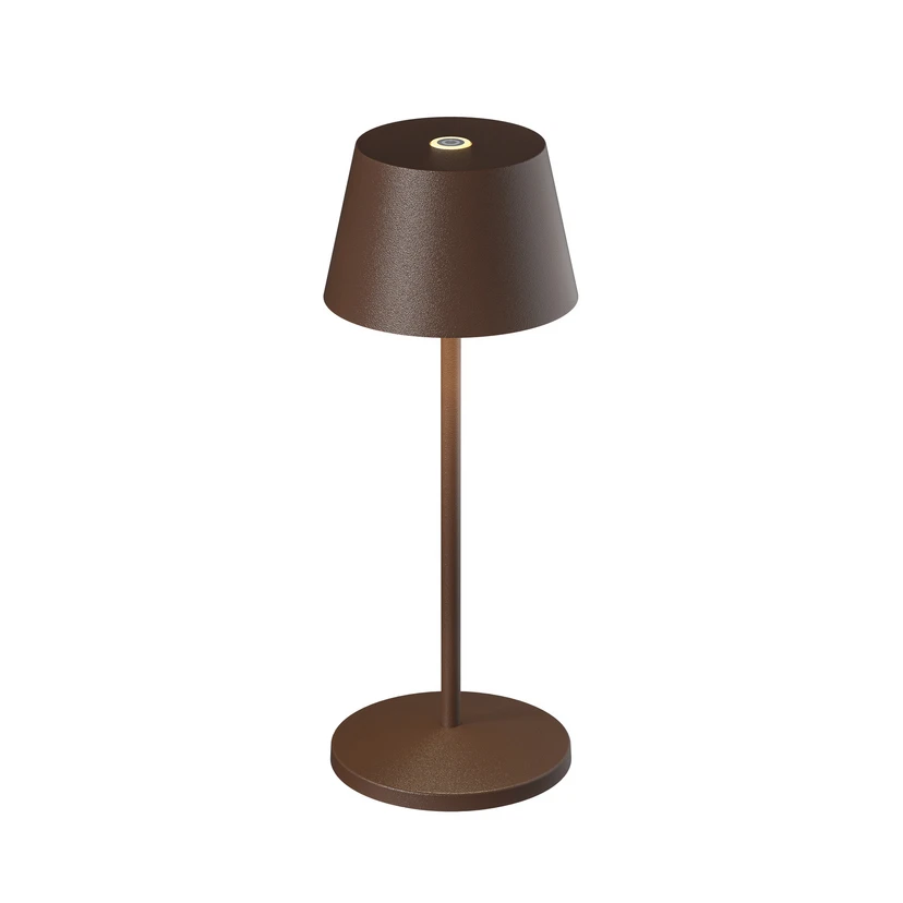 Modi Micro Portable Bordlampe IP65 Corten er en alsidig bordlampe med funktionaliteten i top. Designmæssigt er lampen præget af en smuk simplicitet, der gør den nem at indpasse i mange forskellige miljøer og indretninger. Funktionsmæssigt imponerer lampen med en lang række muligheder takket være sit smarte design. Lampen er trådløs, så man kan have den med på farten. Både lampehovedet, stellet og foden er af korrosionssikret aluminium og har en kapslingsklasse IP65, der gør lampen egnet til både indendørs og udendørs brug. Lampen er udstyret med en indbygget LED-lyskilde, der afgiver en praktisk, nedadrettet belysning. Diffusoren spreder lyset ud, så det får en blød og ensartet fremtoning. Skærmens touch-funktion giver endvidere mulighed for justering af lysets styrke og farvetemperatur, så man kan tilpasse det til ethvert tidspunkt. Selv på den højeste lysindstilling kan lampen lyse i over ni timer mellem hver opladning. Oplader sælges separat.