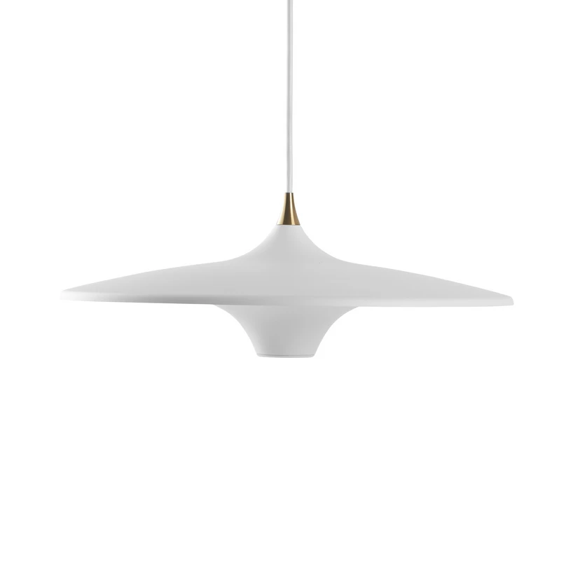 Moja Pendel Ø42 White er et tidløst og elegant design, som uden tvivl vil klæde din indretning. Moja pendlen består af en aluminium skærm med en nydelige messing detalje i toppen, der fuldendes af tekstilledning i samme farve som lampen, hvilket giver den et eksklusivt og moderne look, som kan blende ind i enhver boligindretning. Med sit effektive, integrerede LED lys sørger Moja pendlen for at skabe et godt lys, som både kan være direkte og indirekte, hvilket gør den ideel til over spisebordet eller i stuen, hvor den skaber en hyggelig og behagelig atmosfære. Moja er desuden tilgængelig i forskellige størrelser og nuancer, så du kan vælge den helt rigtige model til netop din bolig.