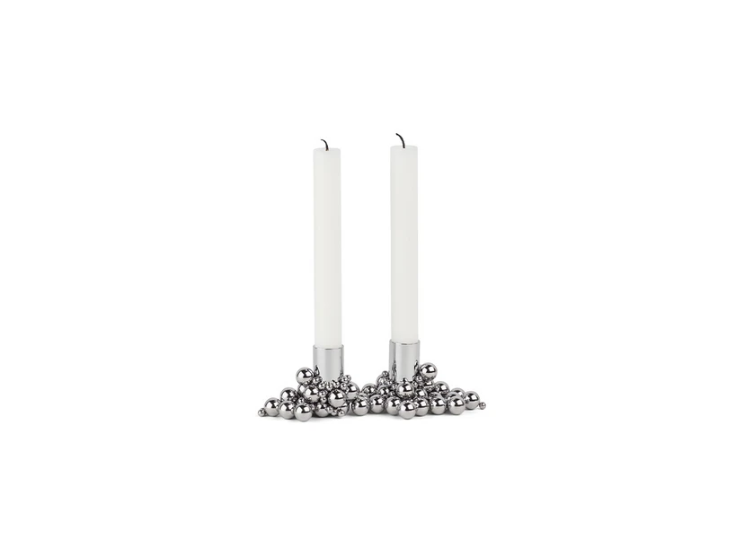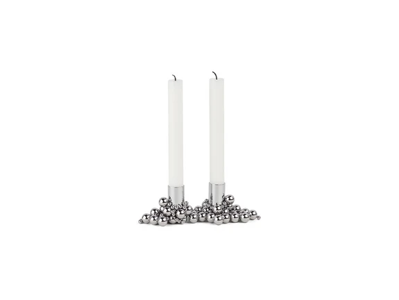Brug Molekyl Candlelight 2 Krom som en dekorativ lysestage på dit bord eller i vindueskarmen. Du kan også kombinere flere Molekyl-stager for at skabe en traditionel adventsstage eller en skulpturel opsætning, hvor lyset ser ud til at svæve over kuglerne. Denne lysestage fås også i sort og messing, så du kan vælge det udtryk, der passer bedst til din indretning.