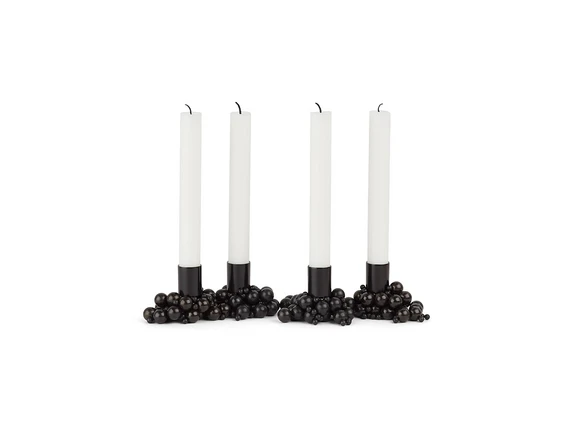 Molekyl Candlelight 4 Sort fra GEJST er en innovativ lysestage, der giver dig mulighed for at udfolde din kreativitet. Denne unikke lysestage består af fire lysholdere, en magnet og stålkugler i forskellige størrelser, alt sammen i elegant sort metal. Molekyl Candlelight 4 Sort er ikke blot en lysestage, men en skulpturel oplevelse, hvor du selv bestemmer det endelige udtryk. Alle elementer holdes sammen af en stærk magnet, der kan interagere gennem ikke-magnetiske materialer, hvilket skaber en illusion af svævende objekter.
