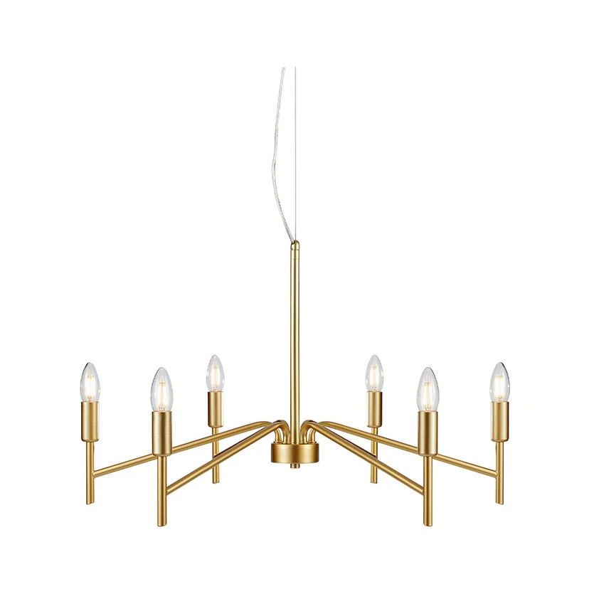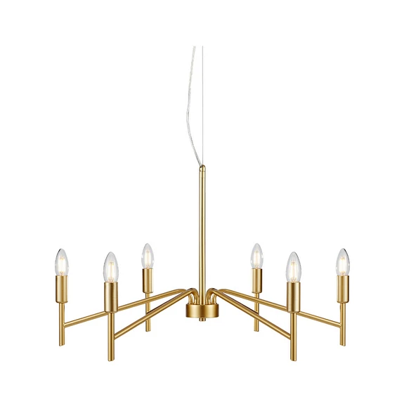 Monarch 6 Pendel Guld fra Markslöjd er den perfekte tilføjelse til dit hjem, hvis du søger en imponerende og elegant belysningsløsning. Denne pendellampe, også kendt som en pendel, er fremstillet i jern og har en smuk guldfinish, der tilføjer et strejf af luksus til både køkkenet og stuen. Med sit matte lakerede metaldesign udstråler Monarch en tidløs elegance, der passer ind i enhver indretning. Lampen har seks lyskilder, der skaber en behagelig og jævn belysning, hvilket gør den ideel til både hverdagsbrug og særlige lejligheder. Den kræver seks pærer med en lille fatning (E14) på maks. 18W eller tilsvarende i LED, som ikke medfølger. Med en diameter på 70 cm og en 1,5 m transparent ledning, er denne pendellampe både praktisk og stilfuld. Giv dit hjem et majestætisk præg med Monarch 6 Pendel Guld..