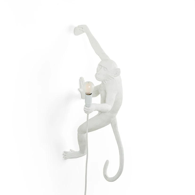 Monkey Hanging Væglampe Højre er en sjov og lusket abelampe, med et stærkt æstetisk udtryk. Den er designet af Marcantonio Raimondi Malerba, der har kombineret dyreverdenen med kunst og design i en iøjefaldende lampe.
