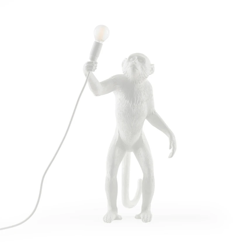 Monkey Standing Bordlampe er en sjov og lusket abelampe, med et stærkt æstetisk udtryk. Den er designet af Marcantonio Raimondi Malerba, der har kombineret dyreverdenen med kunst og design i en iøjefaldende lampe.