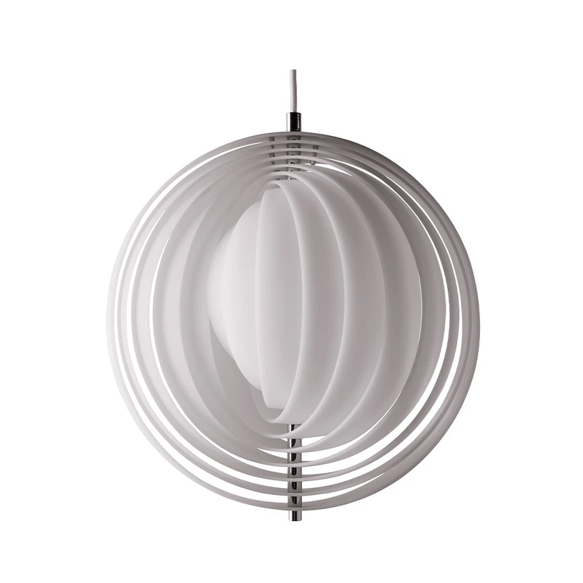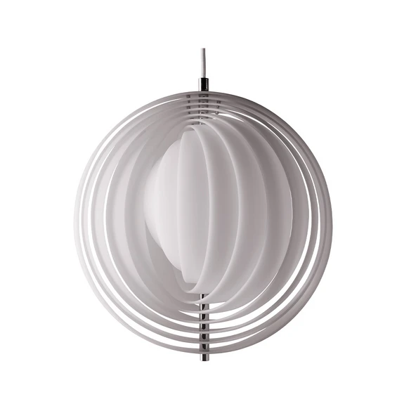 Moon Pendel Ø34 Opal fra Verpan er en tidløs klassiker inden for belysning, designet af den berømte Verner Panton. Denne pendel, fremstillet i akryl, har en elegant opal farve, der tilføjer et sofistikeret touch til ethvert rum. Med en diameter på 34 cm er lampen ideel til at skabe en hyggelig atmosfære i dit hjem. Det unikke viftelignende design sikrer, at lyset spredes jævnt og blødt, hvilket gør det perfekt til afslappende aftener, hvor du ønsker en mere dæmpet belysning. Moon Pendelens udseende ændrer sig afhængigt af betragtningsvinklen, hvilket giver en dynamisk visuel oplevelse. Denne pendel er ikke kun en lyskilde, men også et kunstværk, der kan anvendes i stuen, spisestuen eller soveværelset for at skabe en varm og indbydende stemning. Gør dit hjem komplet med denne ikoniske lampe, der kombinerer funktionalitet og æstetik på smukkeste vis.