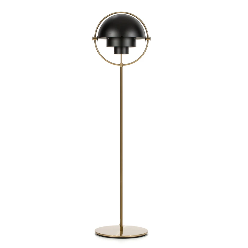 Multi-Lite blev først tegnet i 1972, da Louis Weisdorf gjorde en undtagelse i forhold til sin egen designstil med at bruge flere af de samme elementer. I stedet afspejler dette design hans passion for mangfoldighed. To cylindriske former ligger til grund for lampen, og en metalring omkranser den og forankrer de to kvartalssfæriske skærme, som i sidste ende fuldender et billede af et ikonisk design med flere formål. Multi-Lite Gulvlampen har et tidløst udtryk, der passer til enhver indretning.