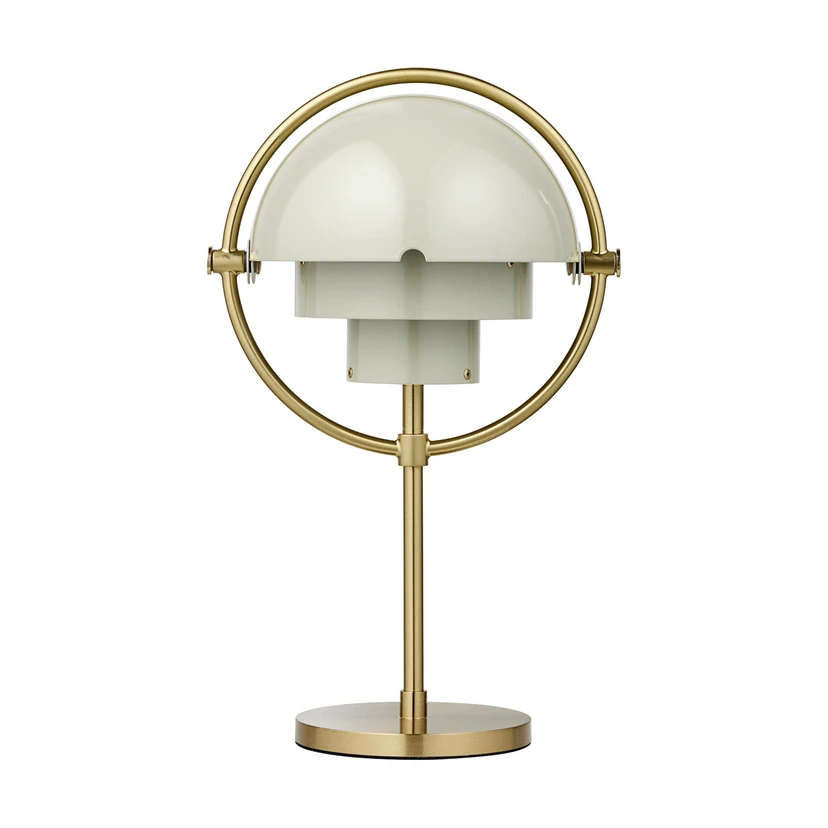 Multi-Lite Portable Bordlampe Messing/Pastel Gray fra GUBI er en bærbar bordlampe, der bringer yderligere fleksibilitet til en af det 20. århundredes mest tilpasningsdygtige lysdesigns. GUBI har i samarbejde med Louis Weisdorfs familie genskabt Multi-Lite designet i en mere kompakt form med USB-opladning og en tre-niveau touch-aktiveret dæmperfunktion. Den ikoniske ring fungerer nu som et håndtag, hvilket gør den let at bære rundt både indenfor og udenfor hjemmet – perfekt til udendørs arrangementer og hyggelige aftener i det fri.