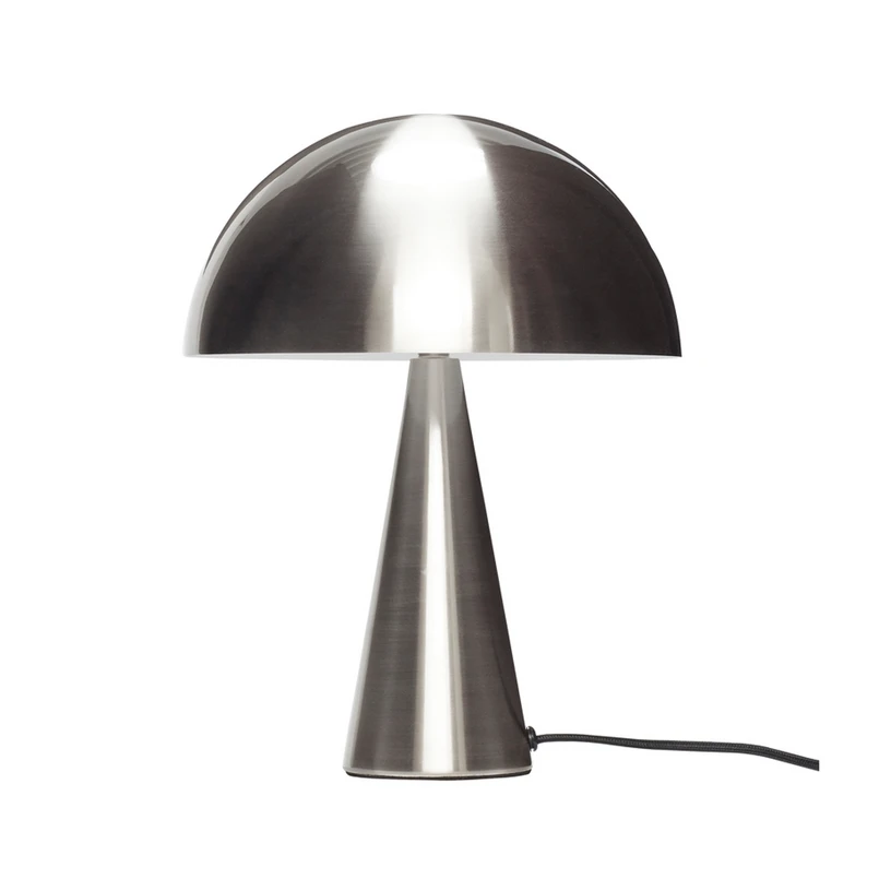 Bordlampe Small Nickel er en helt simpel lampe, der alligevel er fuld af udtryk. Den kuppelformede lampeskærm er placeret ovenpå den kegleformede base, der tilsammen giver et helt minimalistisk og rent design. Lyset reflekteres i den hvide inderskærm, så du får den optimale belysning.