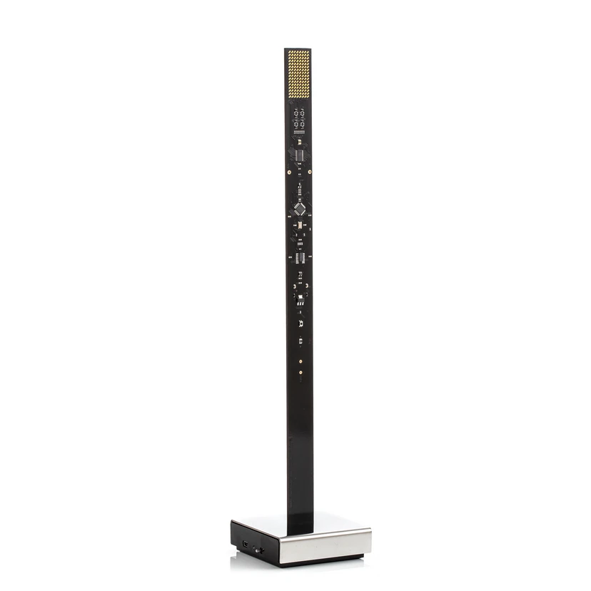 Selve kroppen er en slank aflang printplade, som står solidt på bundpladen. Aller øverst på pladen er der på begge sider, monteret 128 enkelte små, dæmpbare, LEDér der slukkes og tændes, så det ligner en blafrende flamme fra et stearinlys. Forbruget er kun på 0,6 Watt, så det er mere et hyggelys.