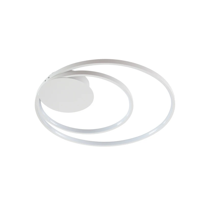 Nerwin Loftlampe White er en smuk, moderne lyskilde med det populære cirkeldesign, der har vundet indpas i mange stuer og soveværelser. Lampen er sammensat af to fuldkomne cirkler, der kredser om det skiveformede loftbeslag og danner et sindrigt mønster.