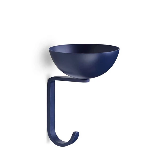 Nest Wall Hook Dark Blue har både praktiske funktioner og æstetisk design. Knagen består af en krog, der har en lille skål placeret på toppen. Du får derfor både et sted at hænge dit overtøj, samt en ”rede” hvori du kan opbevare nøgler eller tegnebogen. Så slipper du for at lede efter dine vigtige genstande, når du er på vej ud af døren.