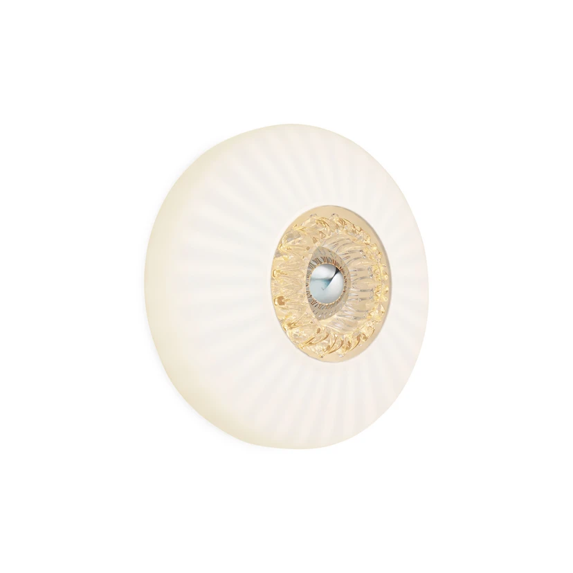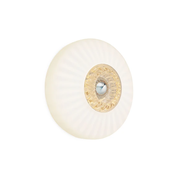 New Wave Optic Wall Opal/White er et helt unikt design, der giver et absolut spændende og smukt lys. Den mundblæste glasskærm er formet med bølger, der giver lampen et yderst elegant udtryk. Når lampen er tændt, kaster det bølgede glas et smukt spil mellem lys og skygger ud i rummet.