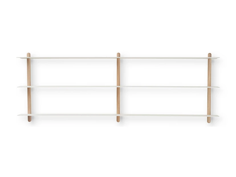Nivo Shelf D Light Oak/White er en elegant og minimalistisk væghylde fra Gejst, der passer perfekt ind i ethvert moderne hjem. Designet af Böttcher og Kayser, er denne hylde skabt med fokus på rene linjer og en enkel æstetik uden overflødige elementer. Hyldesystemet har et svævende udtryk, hvor hver komponent er nøje gennemtænkt i forhold til design, form og funktion. De skrå snit på vangerne gør, at hylderne glider let på plads, hvilket skaber en flydende og let fornemmelse. Fremstillet i træ og med en smuk kombination af eg og hvid, er Nivo hylden både diskret og overbevisende i sin enkelhed. Den er ideel til brug i alle hjemmets rum, hvor den kan fremvise dine yndlingsgenstande eller fungere som en praktisk opbevaringsløsning. Uden synlige skruer fremstår hylden som en ren og stilfuld tilføjelse til din boligindretning.