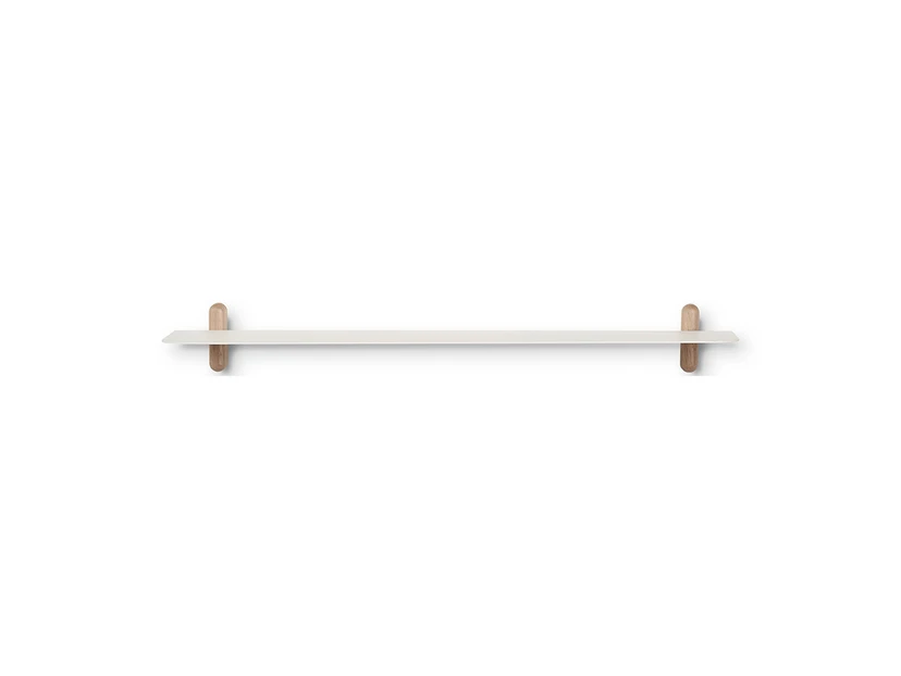Nivo Shelf G Light Eg/Hvid er en elegant og minimalistisk væghylde fra GEJST, der passer perfekt ind i ethvert moderne hjem. Designet af Böttcher og Kayser, er denne hylde skabt med fokus på rene linjer og enkle former, hvilket giver et svævende og sofistikeret udtryk. Hver detalje er nøje gennemtænkt, fra de usynlige skruer til de skrå snit i vangerne, som gør det muligt for hylderne at glide let på plads. Fremstillet i træ og malet i en smuk hvid farve, er Nivo Shelf både funktionel og æstetisk tiltalende. Den er ideel til opbevaring og udstilling af dine yndlingsgenstande i stuen, køkkenet, soveværelset eller kontoret. Med sit lette, nordiske design er denne hylde diskret, men alligevel overbevisende i sin enkelhed. Giv dit hjem et løft med denne stilfulde hylde, der kombinerer form og funktion på bedste vis.