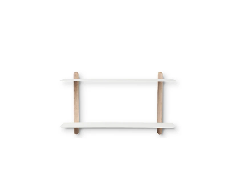 Nivo Shelf Large F Light Oak/White fra GEJST er en elegant og minimalistisk hylde, der passer perfekt ind i ethvert hjem. Denne væghylde, designet af Böttcher og Kayser, er fremstillet af træ og kommer i en smuk kombination af lys eg og hvid. Med sit nordiske udtryk og rene linjer er Nivo hylden både diskret og overbevisende i sin enkelhed. Hver detalje er nøje gennemtænkt, fra de usynlige skruer til de skrå snit i vangerne, der giver hylden et svævende udseende. Den store variant af Nivo hylden tilbyder flere anvendelsesmuligheder takket være de større hylder og øget vægtkapacitet. Den er ideel til opbevaring og udstilling i alle hjemmets rum, fra stuen til kontoret. Nivo hylden fås i seks forskellige opstillinger og er også tilgængelig i sort ask/sort. Giv dit hjem et stilfuldt løft med denne funktionelle og æstetiske hylde.