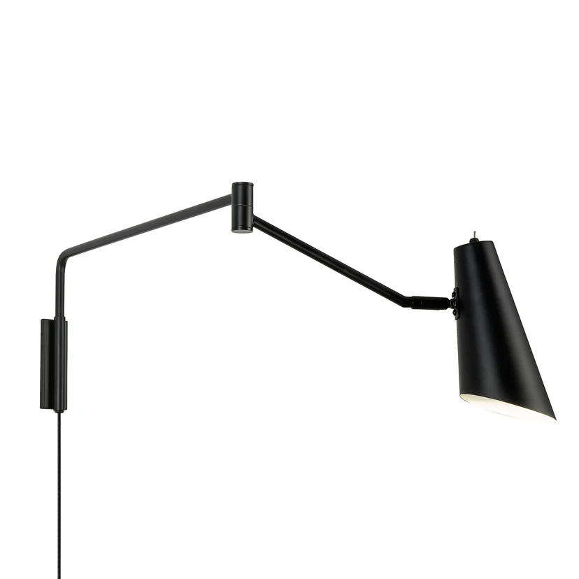 Noa Væglampe Long Matt Black er den praktiske væglampe, der har et godt retningsbestemtlys og en praktisk skærm, der både kan drejes og bukkes. På toppen af lampens hoved finder du en kraftig afbryder, så du ikke behøver lede efter stikkontakter når du mangler lys. Det slanke design og det stilrene udtryk løber fra lampens top til tå, hvor den kraftige stofledning kommer ud.