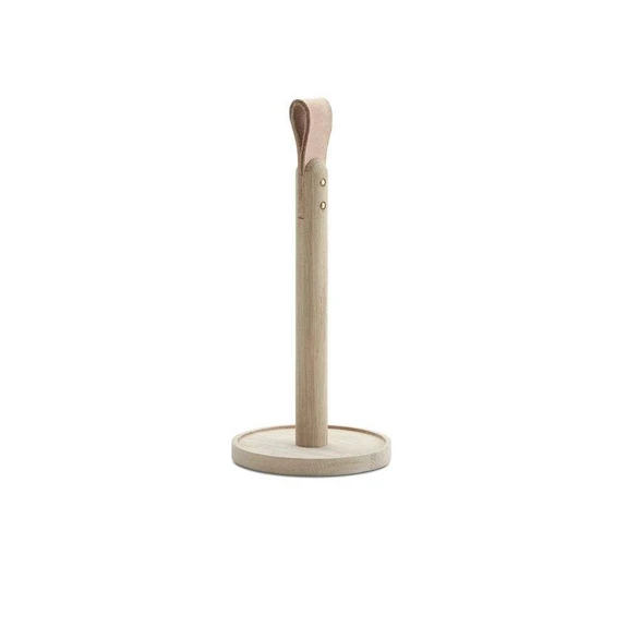 Holderen er forsynet med en bred, solid fod, så køkkenrullen holdes på plads, en læderstrop, der gør den nem at flytte, og fine metalnitter med en stilfuld messingbelægning til at perfektionere designet.