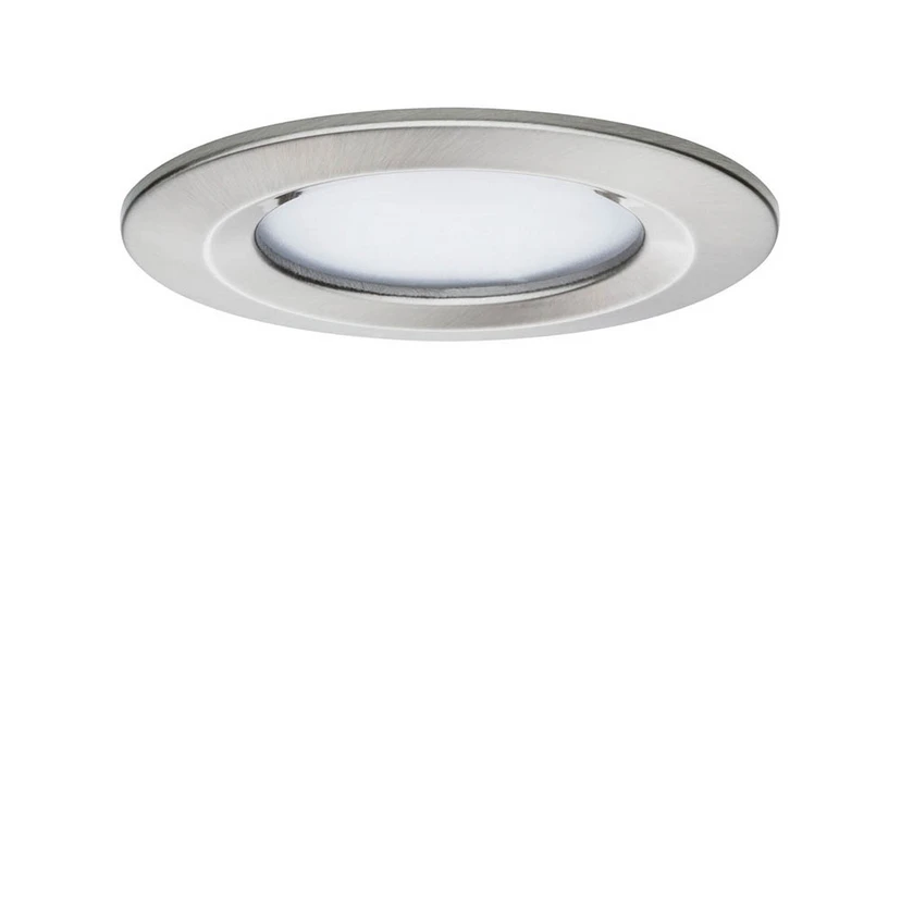 Nova Coin forsænket loftlampe Ø78 RGBW IP44 3 stk. Brushed Iron - Paulmann er den perfekte løsning for alle, der ønsker at skabe en unik atmosfære i deres hjem. Med denne loftlampe fra Paulmann får du et sæt med tre indbygningsspots, der tilbyder 16 millioner farver og lysstemninger. Disse lamper er fremstillet af robust aluminium med en elegant metaloverflade og passer perfekt ind i ethvert rum. Den høje kapslingsgrad IP44 gør dem ideelle til fugtige rum, da de er sprøjtevandsbeskyttede. Med ZigBee 3.0 kan du nemt styre belysningen via en app, fjernbetjening eller stemmekommando. Uanset om du ønsker behageligt varmt lys eller funktionelt dagslys, kan du indstille farvetemperaturen fra 2200K til 6500K. Den indbyggede hukommelsesfunktion sikrer, at dine præferencer gemmes. Takket være det drejelige led kan lyset rettes præcist derhen, hvor du har brug for det. Installationen er nem takket være de udskiftelige kiler og den direkte 230V-tilslutning.