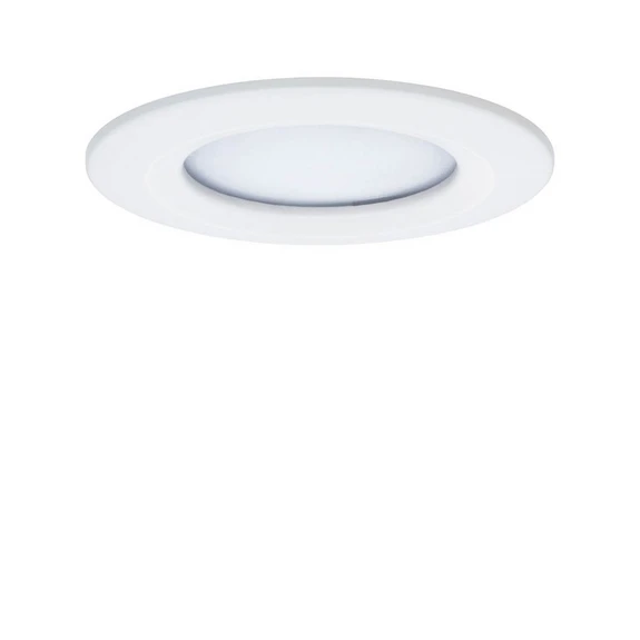 Nova Coin forsænket loftlampe Ø78 TW IP44 3 stk. Mat hvid fra Paulmann er den perfekte løsning for alle, der ønsker fleksibel og moderne belysning i deres hjem. Denne loftlampe, der også kaldes spotlight eller indbygningsspot, er fremstillet af holdbart aluminium og har en elegant hvid overflade, der passer ind i ethvert interiør. Med en diameter på 7,8 cm er den både diskret og stilfuld. Nova Coin-lampen er udstyret med en intelligent farveskiftefunktion, der skaber en unik atmosfære i ethvert rum. De tre medfølgende LED-pærer er nemme at udskifte, og de højkvalitative fastgørelsesringe sikrer en nem installation. Med kapslingsgrad IP44 er lampen ideel til fugtige rum, da den er sprøjtevandsbeskyttet. Med ZigBee 3.0-teknologien kan du styre lampen via app, fjernbetjening eller stemmekommando og indstille lysfarven fra varm guld (2200K) til dagslys hvid (6500K). Med den trinløse dæmpningsfunktion kan du justere lysstyrken efter behov, og den integrerede hukommelsesfunktion husker din sidste indstilling. Oplev en enkel og effektiv installation med de udskiftelige kiler og den lave indbyggedybde.