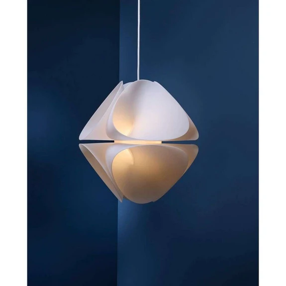 Nova Pendel Opal Hvid er en bemærkelsesværdig pendel lampe fra Frandsen, der bringer en ny dimension til dekorativ belysning. Designet af den talentfulde danske designer Esben Bala Skouboe, er denne pendel en sand stjerne i dit hjem. Inspireret af den gyldne ratio, som ses i naturens vidundere som galakser, blomster og konkylier, består Nova af otte spiralformede kegler, der skaber en harmonisk og poetisk form, selv når lyset er slukket. Fremstillet i Horsens, Danmark, af Frandsens dygtige team, er hver kegle skabt ved hjælp af avancerede støbeprocesser, der understreger Frandsens engagement i innovativt design. Den halvtransparente plastmateriale giver en smuk gradient af lys og skygge, der skaber en æterisk glød. Nova Pendel Opal Hvid er ikke blot en lampe, men en skulpturel oplevelse, der kan forvandle ethvert rum i dit hjem til et kunstværk.