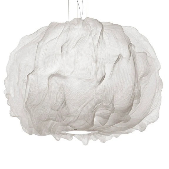 Nuée Pendel Hvid er en magisk kreativ lampe fra italienske Foscarini i samarbejde med prisvindende Marc Sadler, der som altid bringer en sans for innovation og eksperimentel leg med materialerne. Denne tilgang ses tydeligt her. Pendlen hænger fra loftet som en let hvid sky fra hvis indre det blide og yndefuld lys bølger som forårssolen, der byder gennem skydækket.