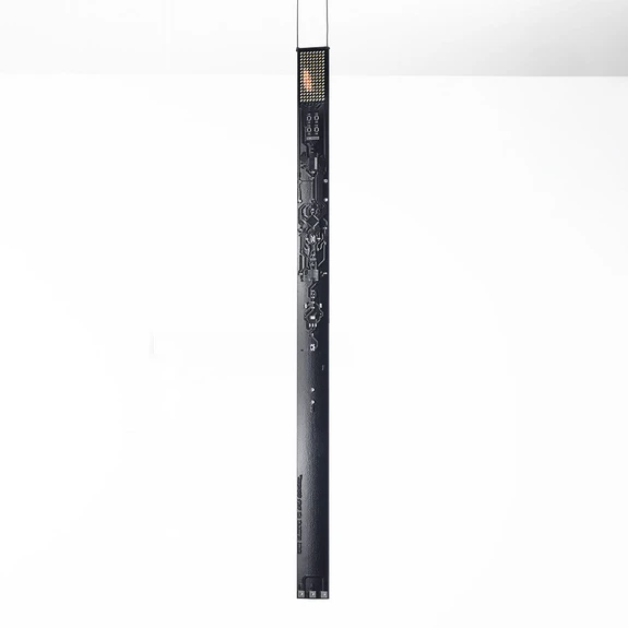 Selve kroppen er en slank aflang printplade som hænger og svæver i et par tynde wires. Aller øverst på pladen er der på begge sider, monteret 128 enkelte små, dæmpbare, LEDér der slukkes og tændes, så det ligner en blafrende flamme fra et stearinlys. Forbruget er kun på 0,6 Watt, så det er mere et hyggelys.